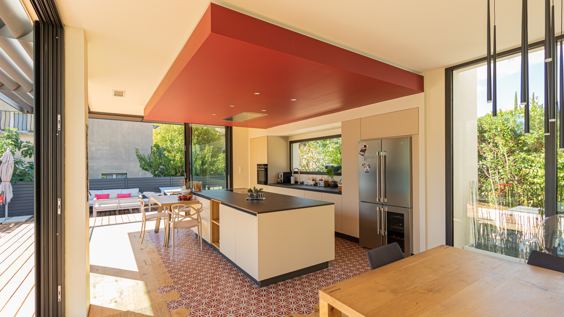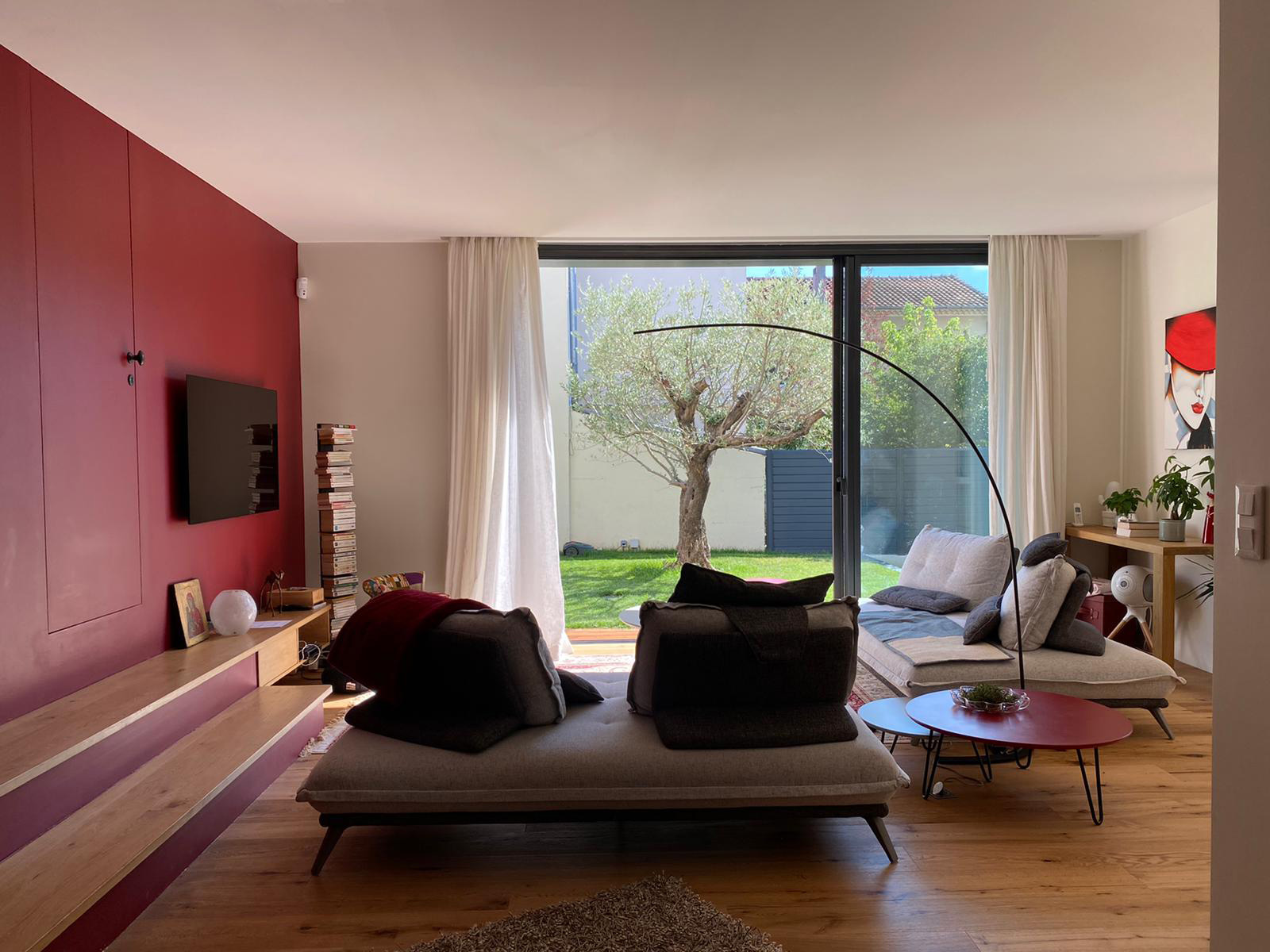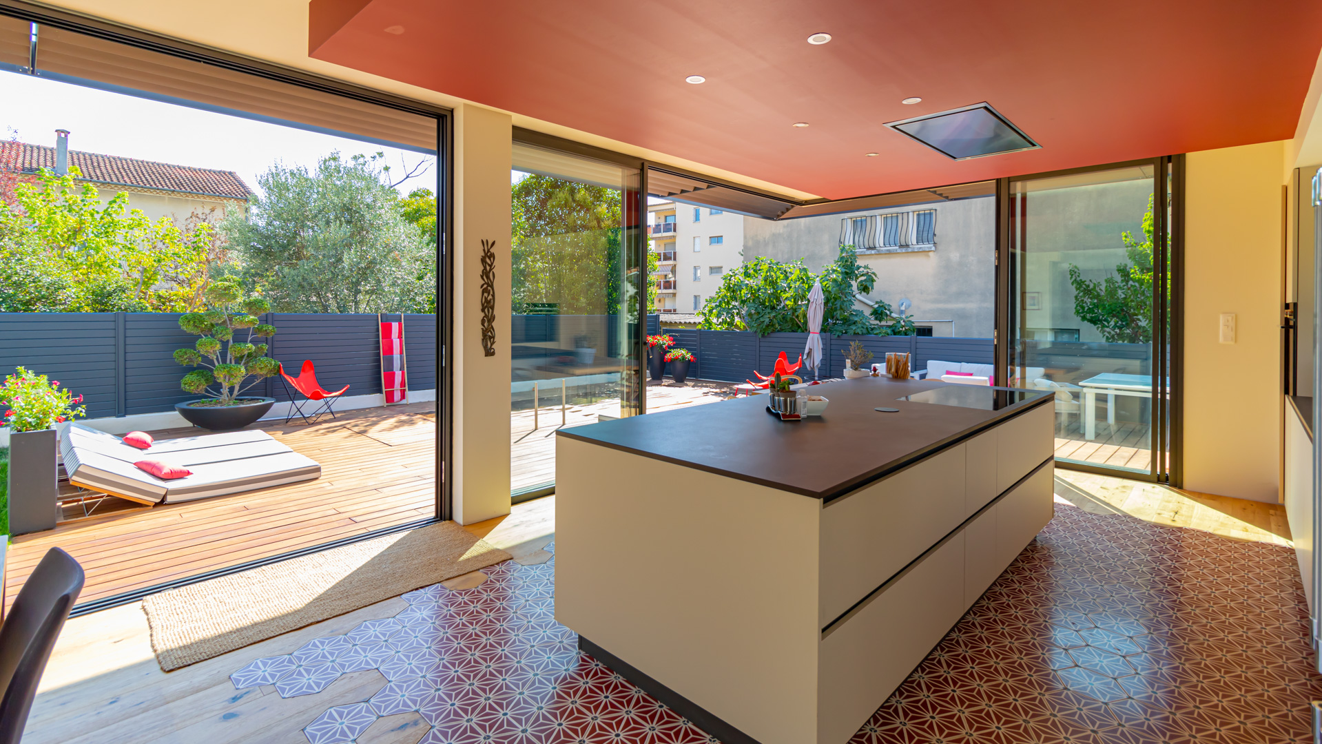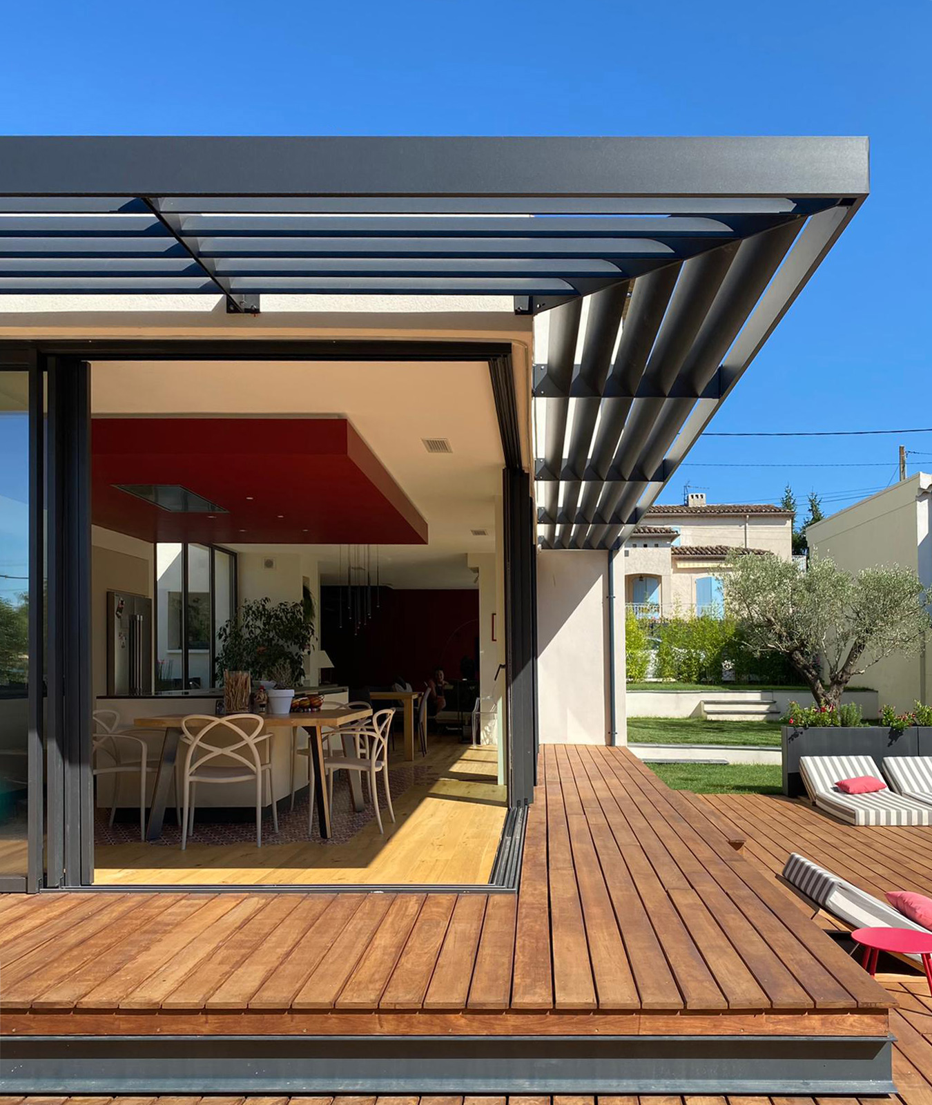 Le projet a consisté à faire une extension et à rénover une maison individuelle située à côté du centre ville d’Aix en provence. La maison, des années 60, était composée d’un grand garage au RDC et d’un appartement à l’étage. Nous avons donc repensé toute la disposition intérieure en remettant les espaces de vie au RDC afin de profiter largement du jardin.