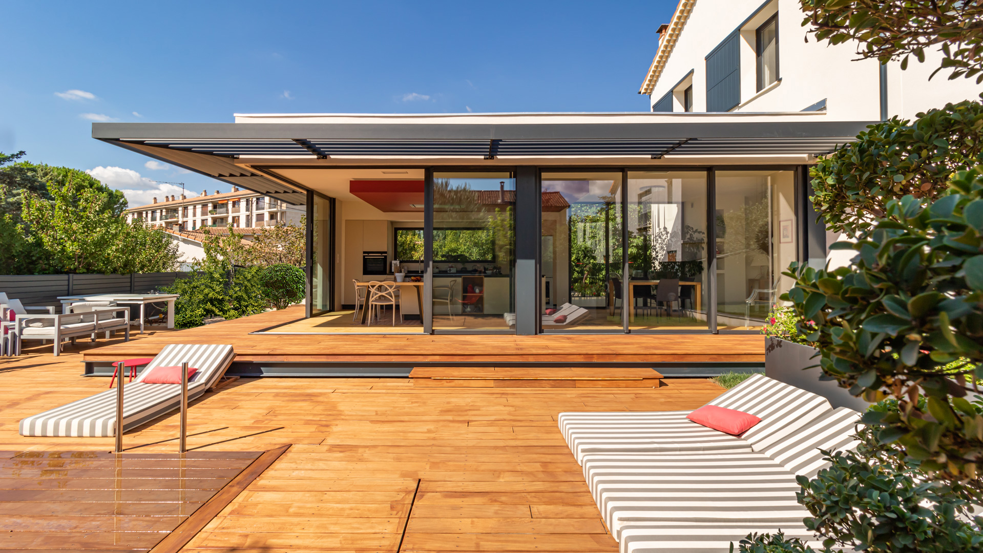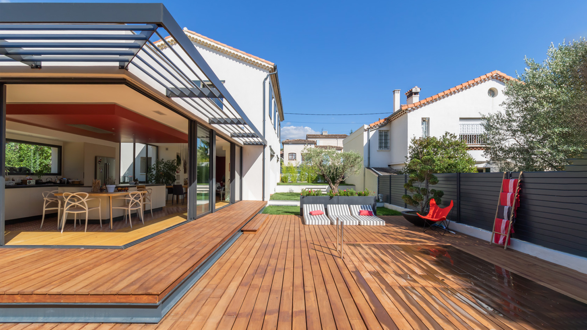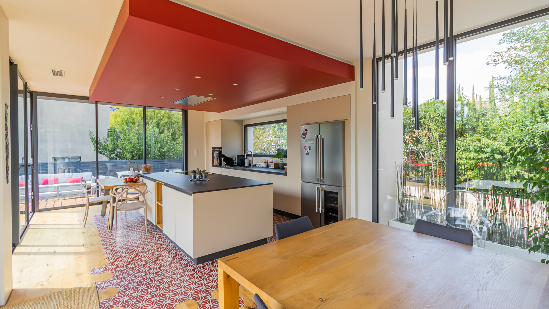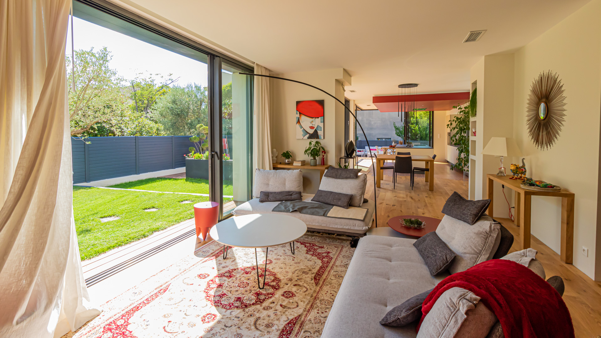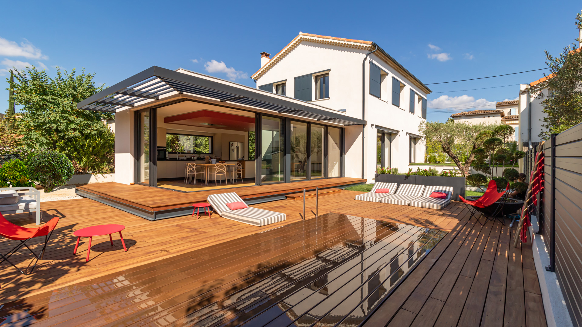 Le projet a consisté à faire une extension et à rénover une maison individuelle située à côté du centre ville d’Aix en provence. La maison, des années 60, était composée d’un grand garage au RDC et d’un appartement à l’étage. Nous avons donc repensé toute la disposition intérieure en remettant les espaces de vie au RDC afin de profiter largement du jardin.