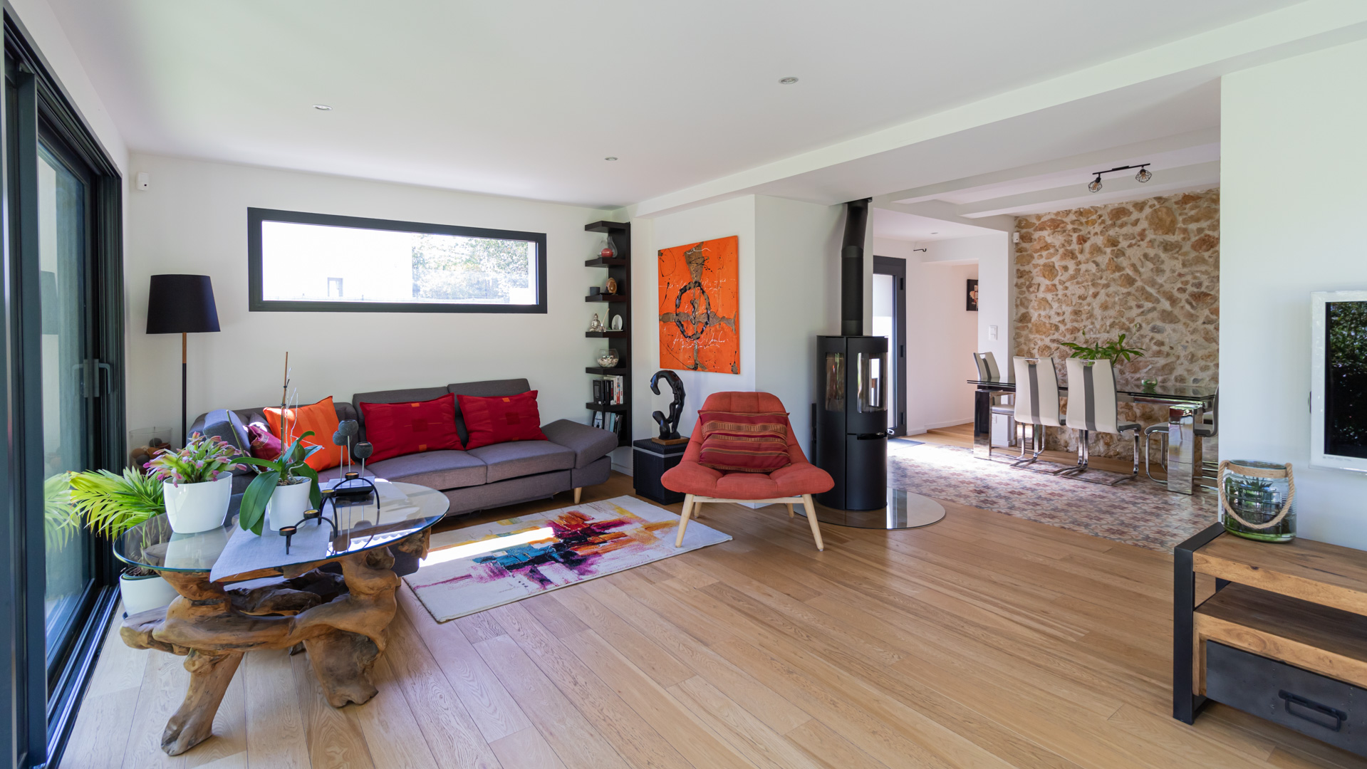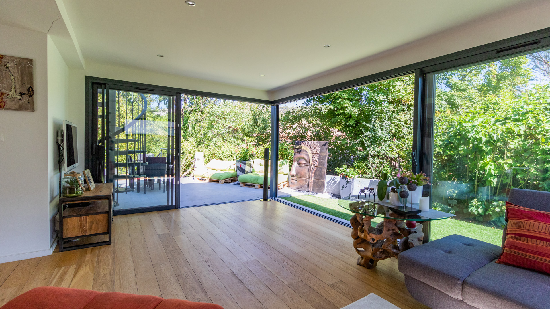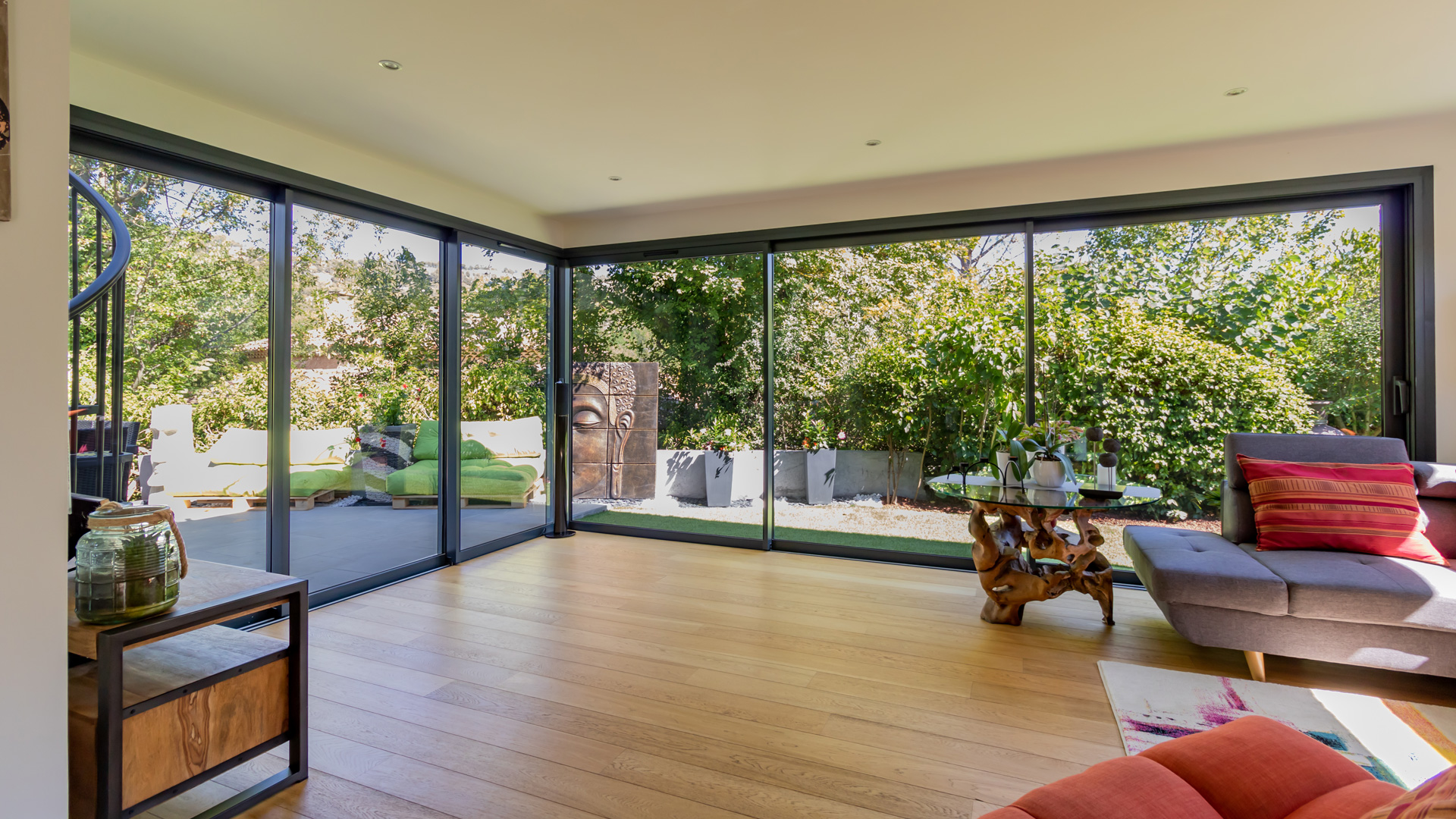 L’objectif du projet était de la consolider, de l’agrandir et créer des espaces largement ouvert sur l’extérieur permettant d’accentuer la perspective et d’agrandir visuellement l’espace.
