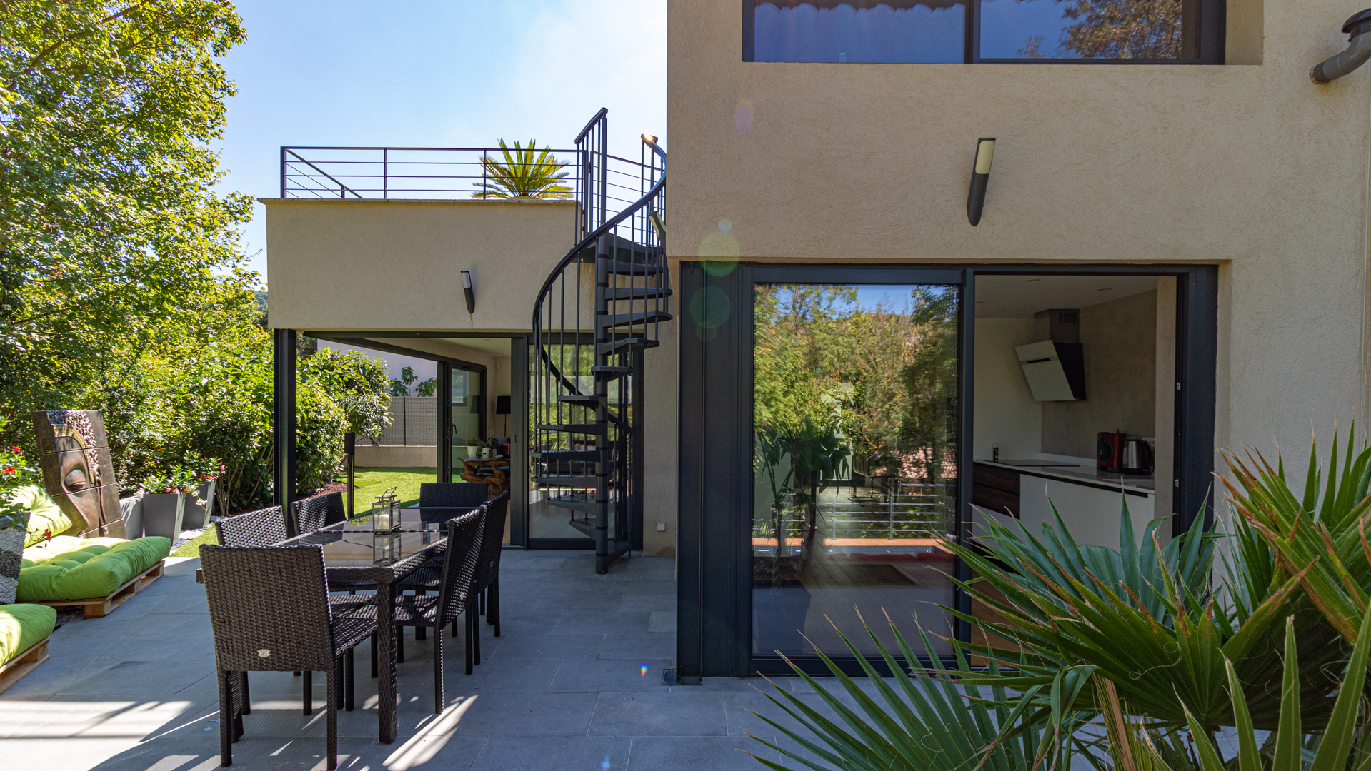 Le projet a consisté à faire une extension et à rénover une petite maison mitoyenne située sur la commune du Tholonet. La maison ancienne avait beaucoup bougé avec le temps car elle avait été construite en pierre et sans fondation.